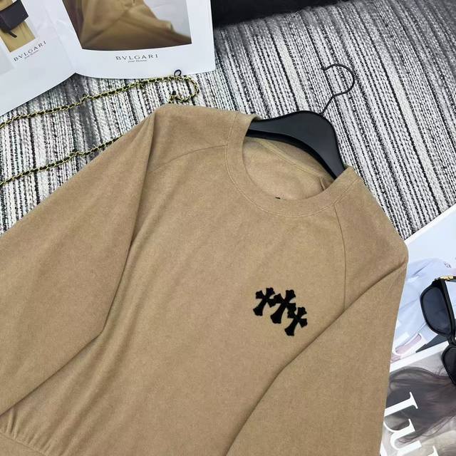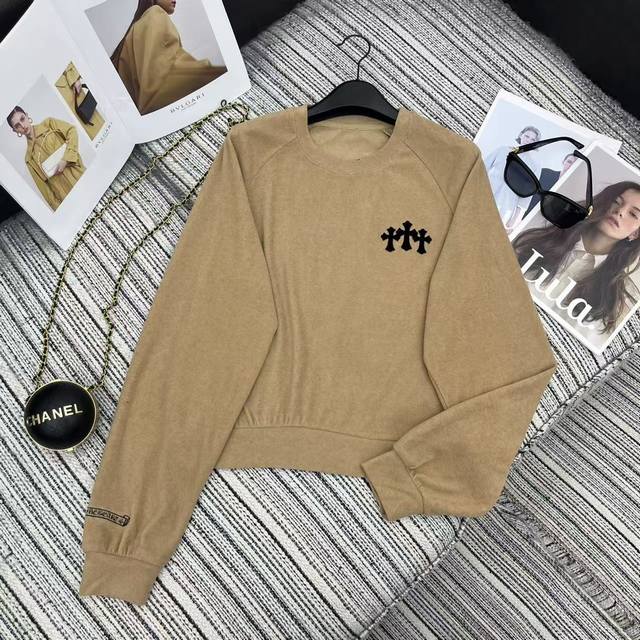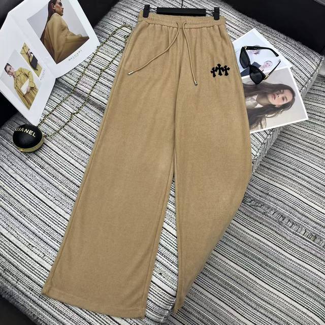 Strongly recommend the 25th year early autumn series Crox * new flocked cross embroidery round neck long-sleeved sweatshirt with elastic waist wide-leg pants suit three colors Sml