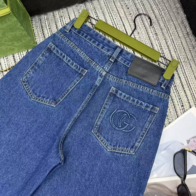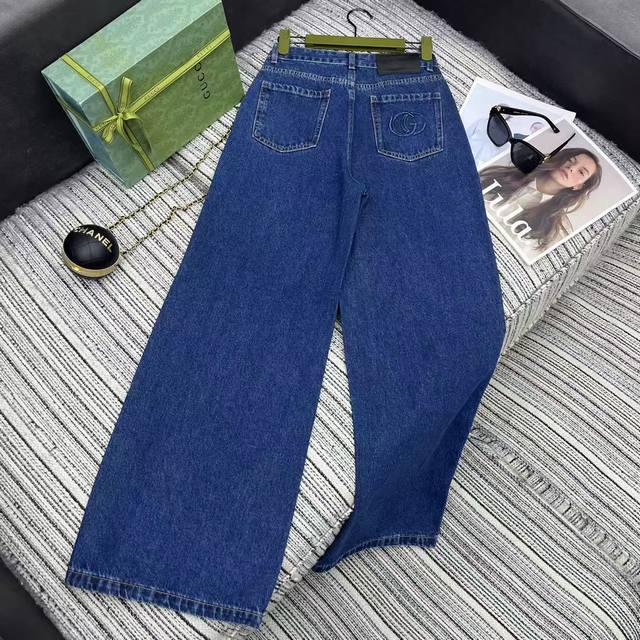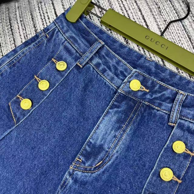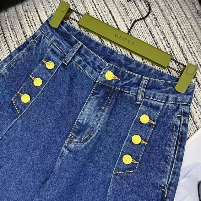 Strongly recommend the 25th year early autumn series Gu* new metal button design denim wide-leg pants Sml