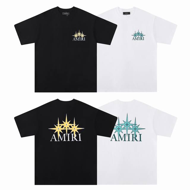 Amiri 2025 Spring and Summer New Logo Round Neck T-shirt High Street Unisex Loose Classic Letter Printed Short Sleeve