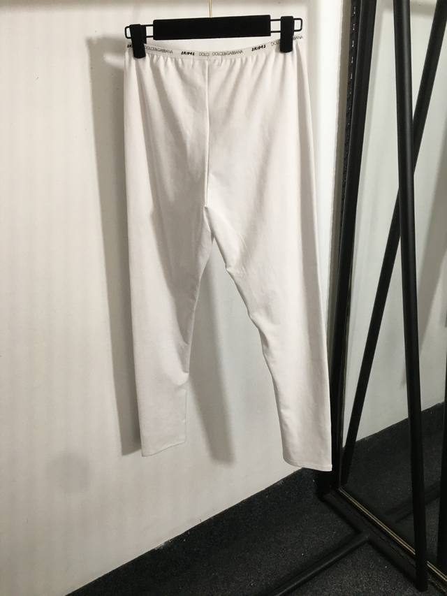 Style No. 20250141 Dg X Skim* Collaboration New Logo Letter Print Webbing Waistband Elastic High-Waisted Leggings, White, Black, Sizes S-XL, M; Waist 64 Elastic, Length 93 DDD