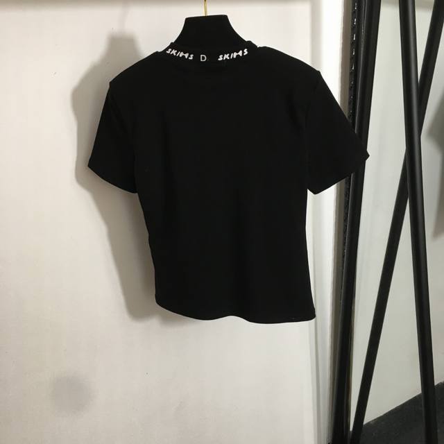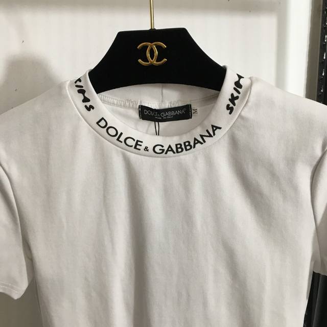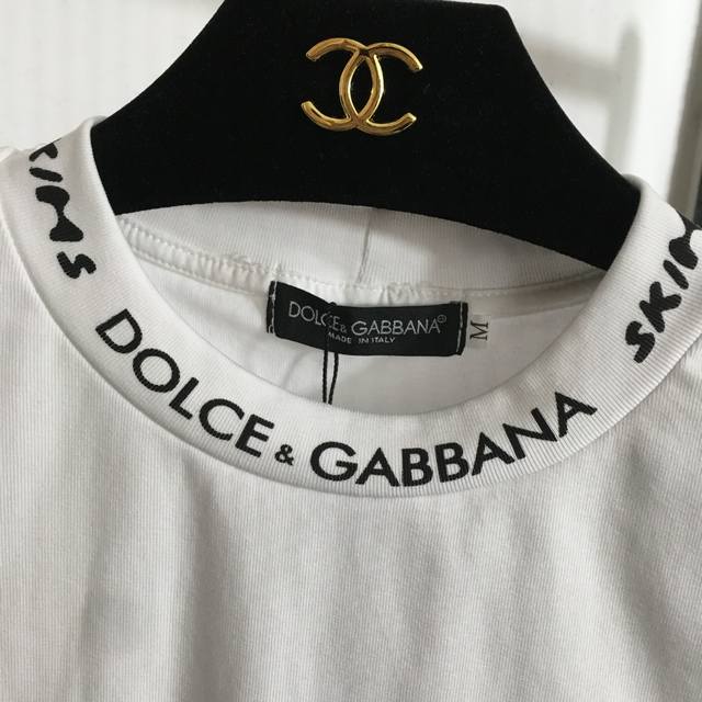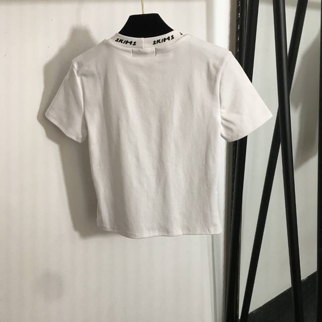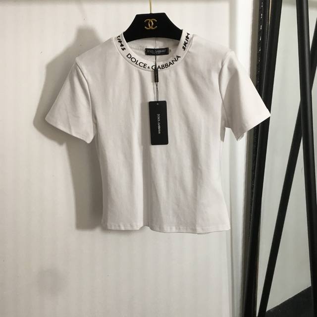 Style No. 20250142 Dg X Skim* Collaboration New Slim Fit Crew Neck Short Sleeve T-Shirt with Letter Logo Trimming, White, Black, Sizes S-XL, Shoulder Width 37cm, Chest 84cm, Sleeve Length 17cm, Length 50cm DDD