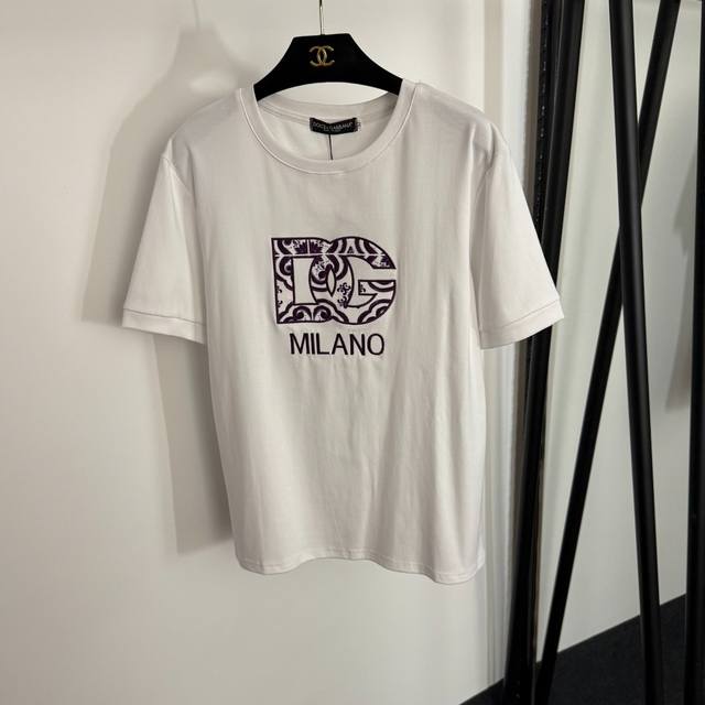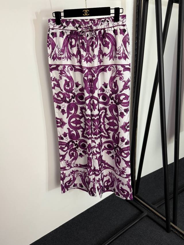 Style No. 20254018 Dg* New style suit, short-sleeved T-shirt with embroidered logo on the chest + wide-leg pants with elastic waist, purple, size S-Xl, M; shoulder width 44, chest 94, sleeve length 22, length 64; waist 70 elastic, length 96