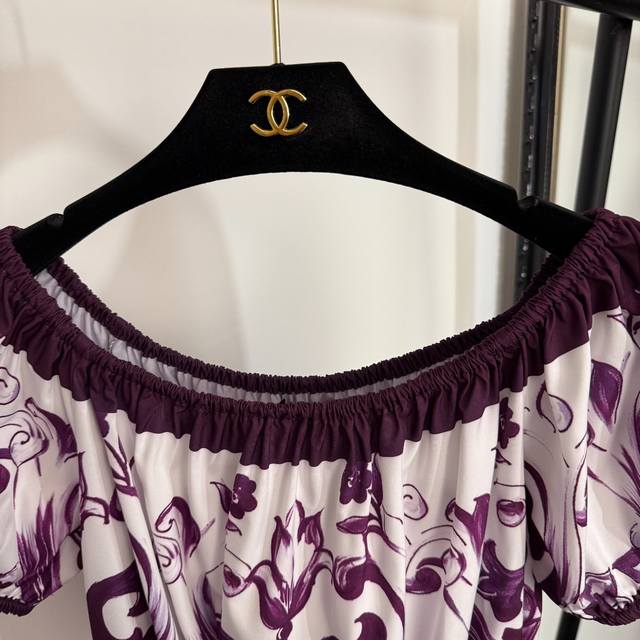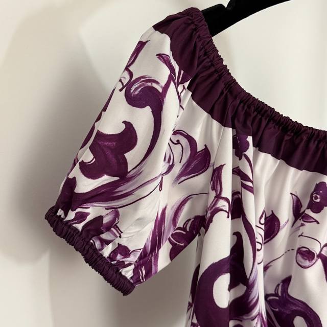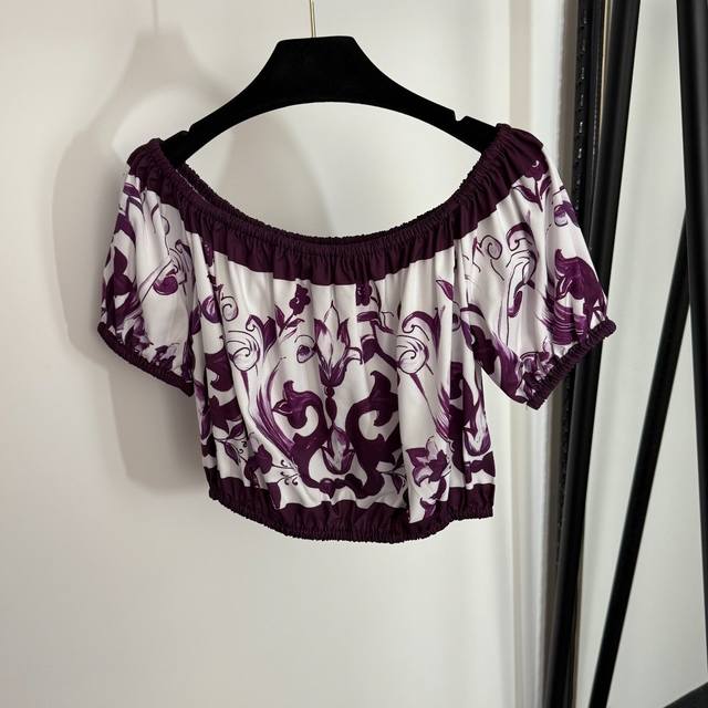 Style No. 20254046 Dg* New retro floral print short-sleeved tube top, purple, S-Xl, M size; bust 78, sleeve length 20, length 38