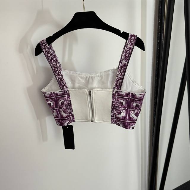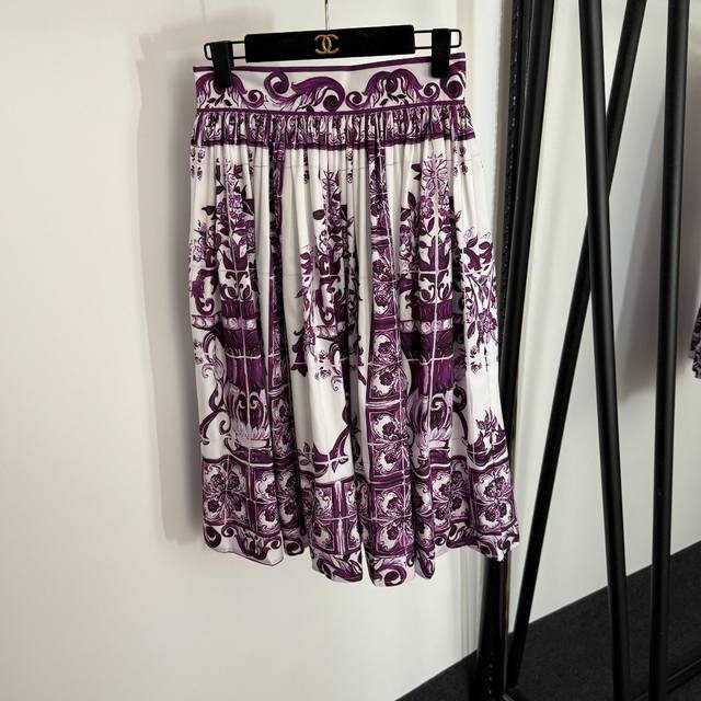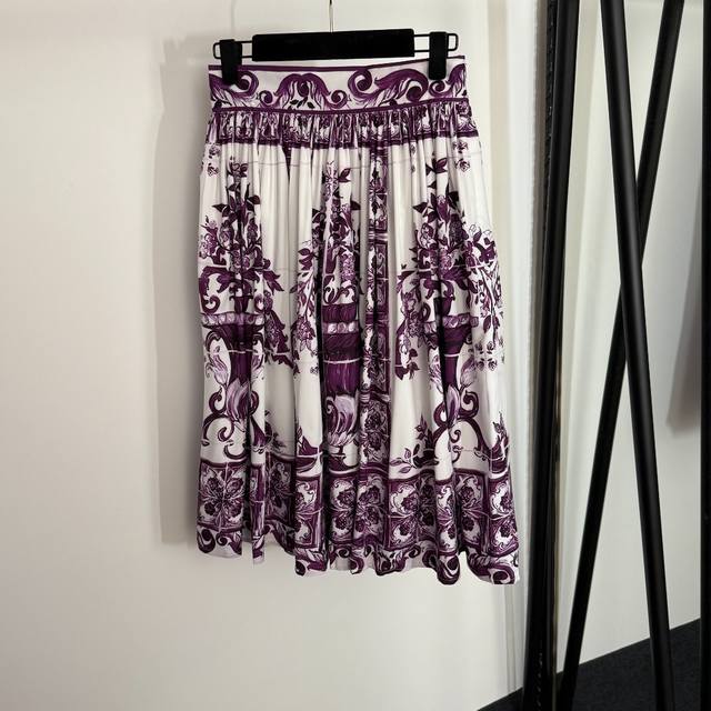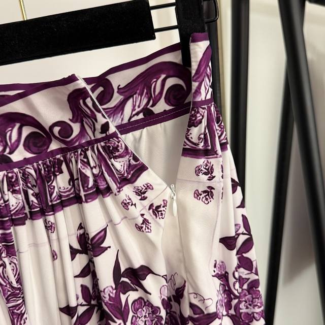 Style No. 20254049 Dg* New style suit, retro floral print tube top camisole + high waist pleated skirt, purple, S-Xl, M size; bust 86, length 35; waist 68, length 69