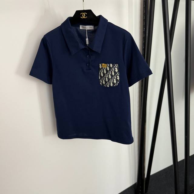 Style No. 20254100 Dio* new suit, Miss embroidered single pocket Polo collar sh