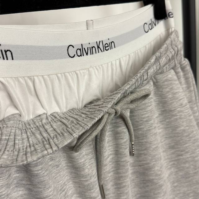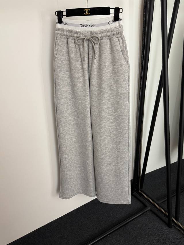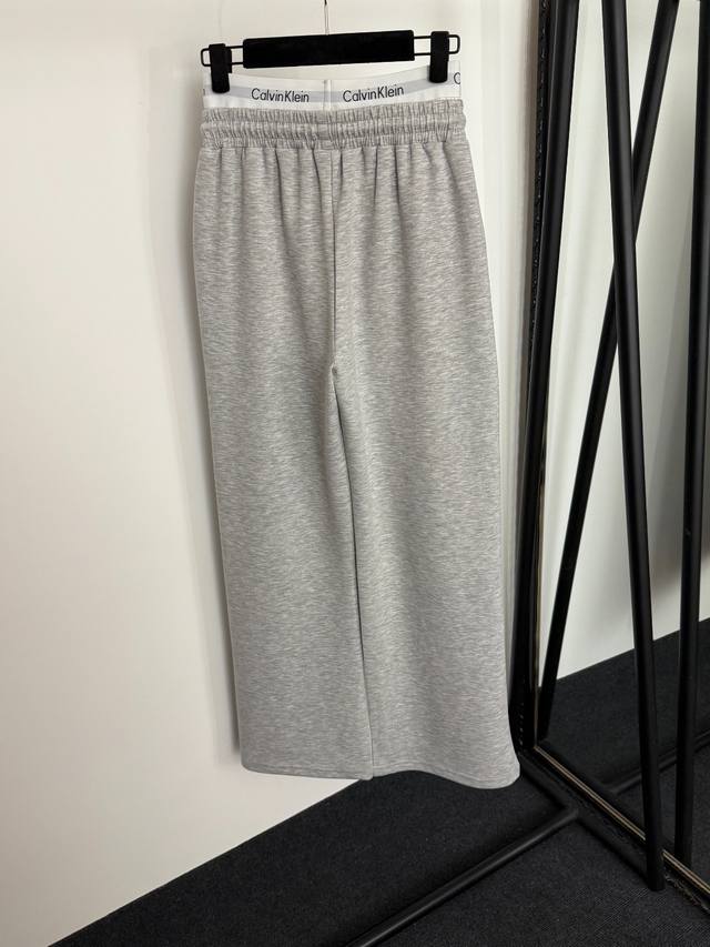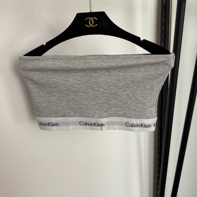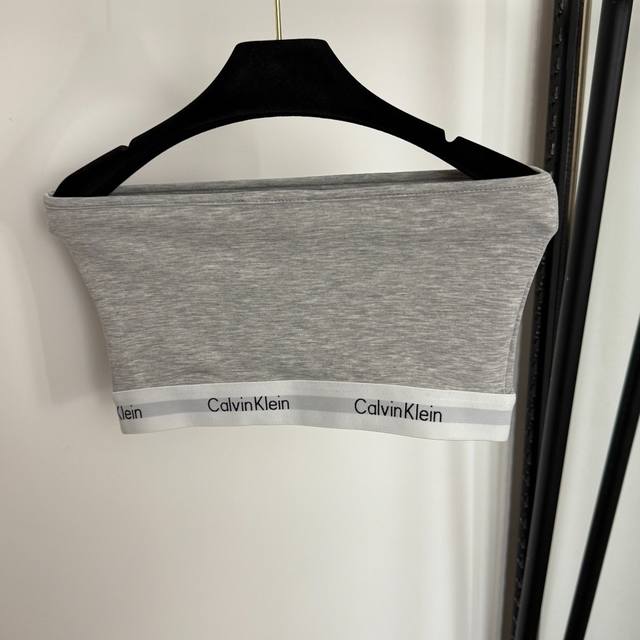 Style No. 20254135 Calvinklein*Ck new sports suit, sexy tube top with letter webbing + high waist casual trousers, gray, black, S-Xl, M size; bust 66, length 23; waist 66 elastic, length 107.