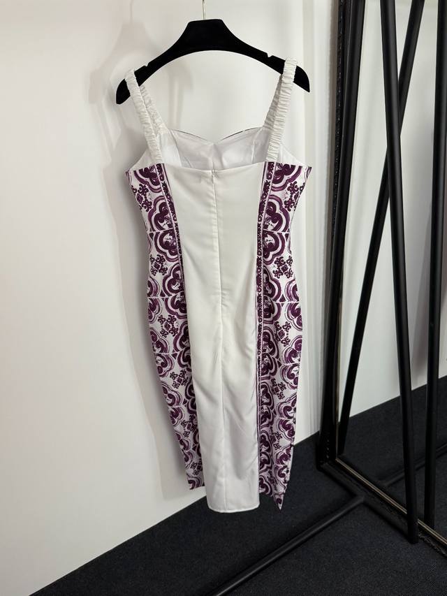 Style No. 20254169 Dg* New retro pattern print color matching sling slim tube dress, purple, S-Xl, M size; bust 88, waist 74 elastic, length 111