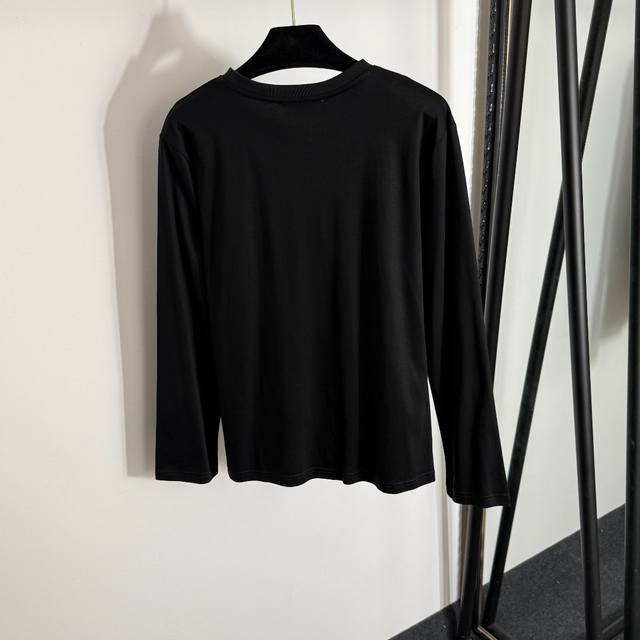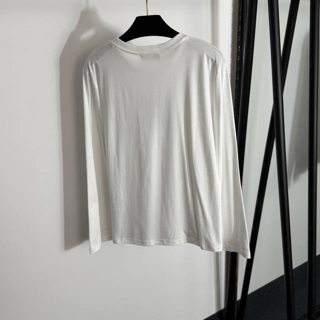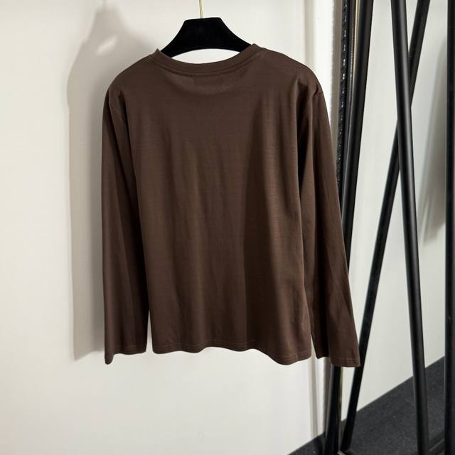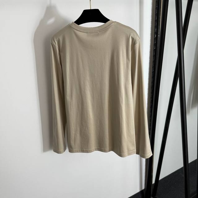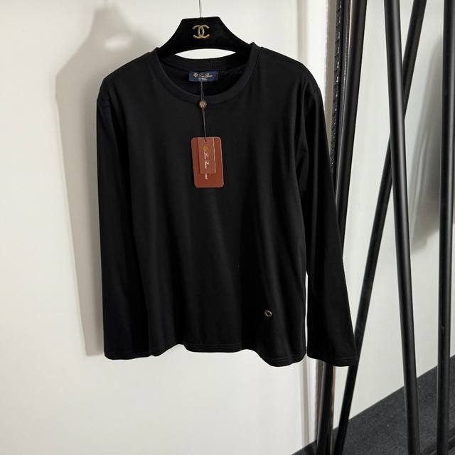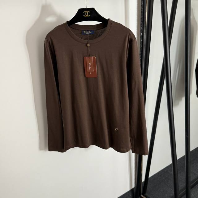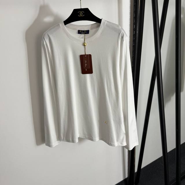 Style No. 20254673 Loro Piana*Lp new metal circle embellished casual long-sleeved T-shirt, white, black, brown, apricot, size Sml, M; shoulder width 42, chest 98, sleeve length 59, length 63.