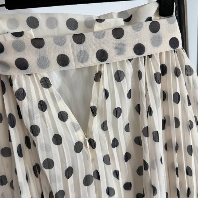 Style No. 20254675 Zimmermann new suit, elegant polka dot print stand-up collar long-sleeved shirt + tie waist pleated skirt with suspender lining, apricot, S-Xl, S size; chest 76, length 37; shoulder width 37, chest 100, sleeve length 63, length 64; waist 74, length 102.