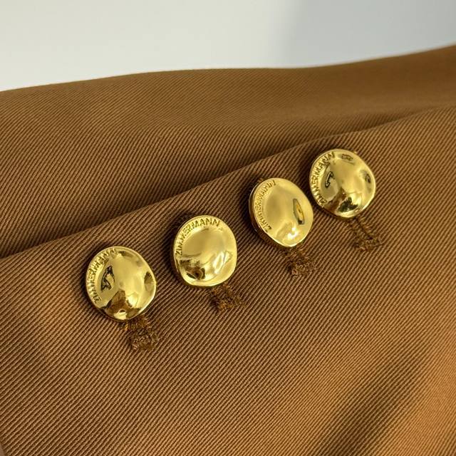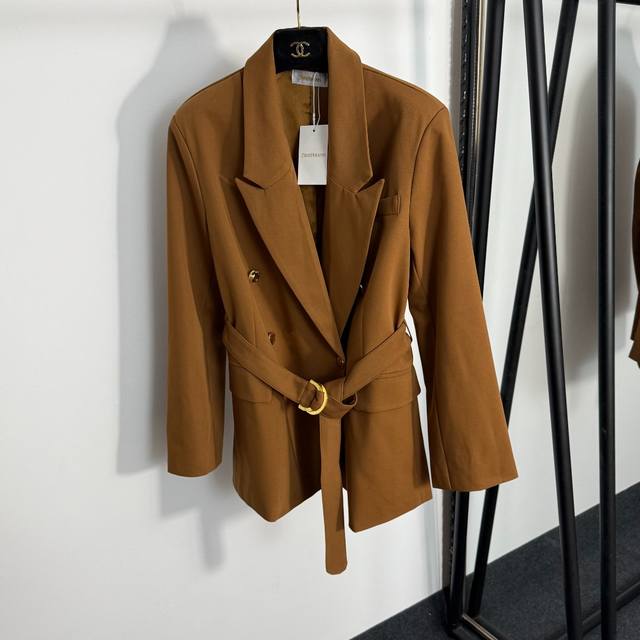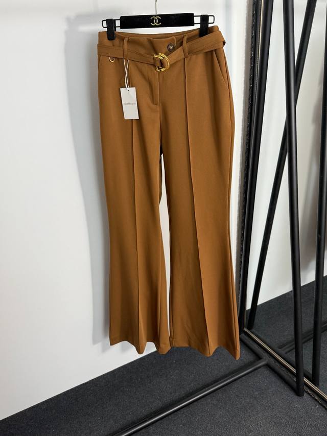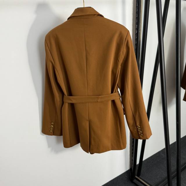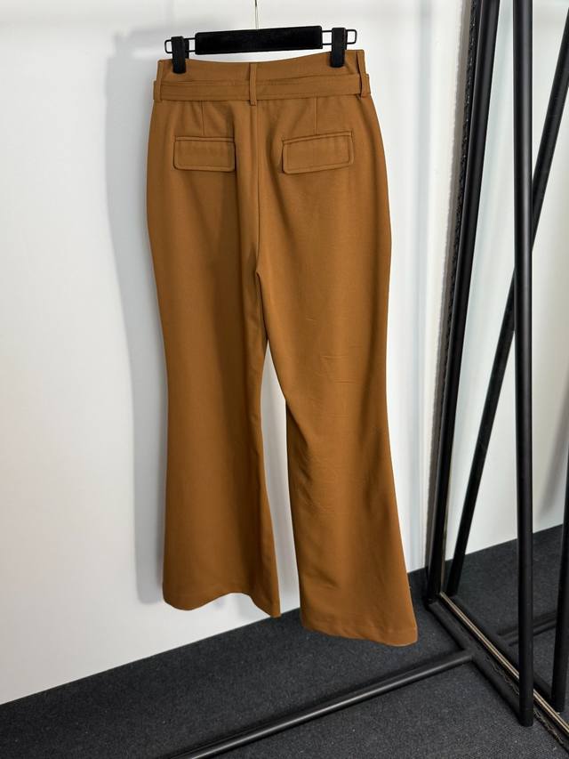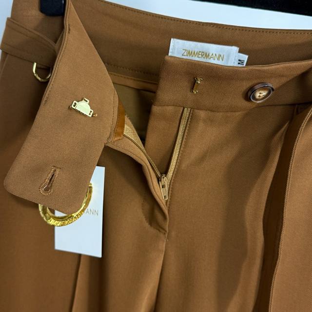 Style No. 20254688 Zimmermann's new Ol suit, custom-made gold hardware button-and-tie waisted long-sleeved suit jacket with high-waisted flared trousers, brown, Sml, M size; shoulder width 43, chest 104, sleeve length 61, length 74; waist 72, length 113.