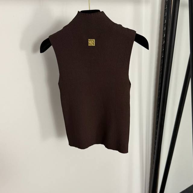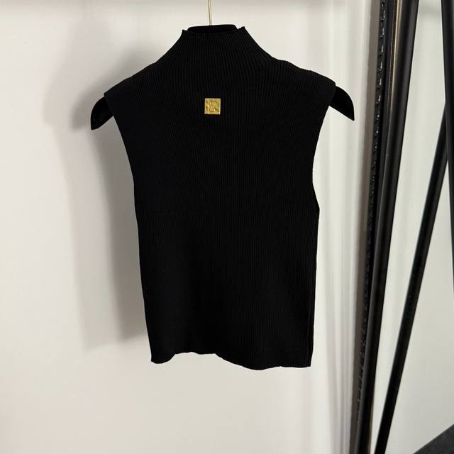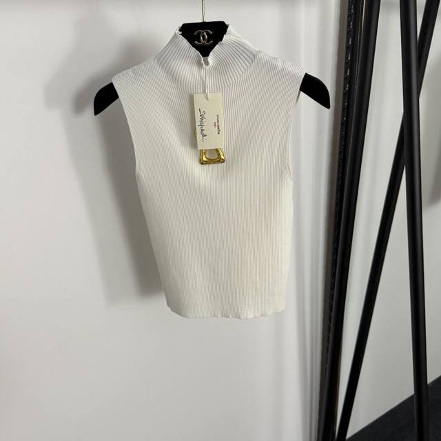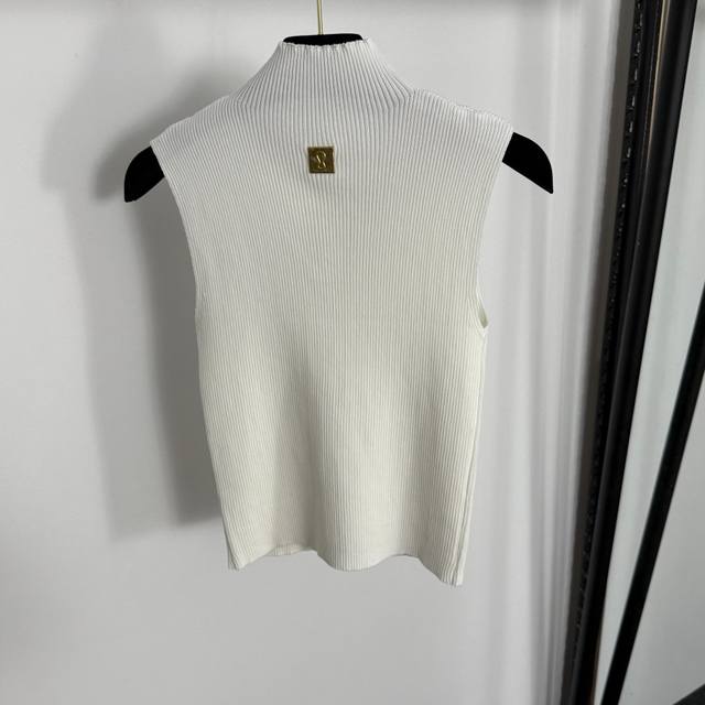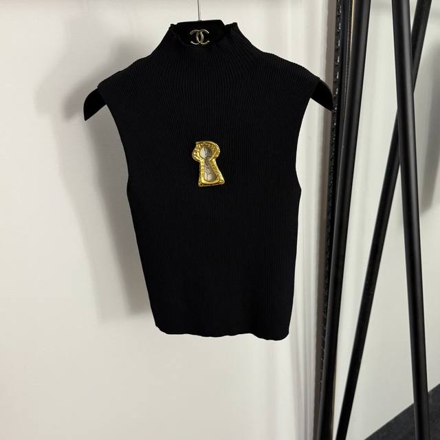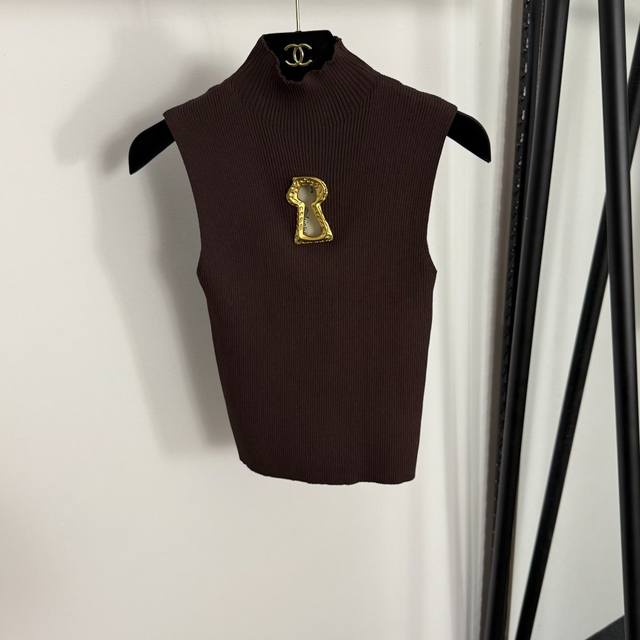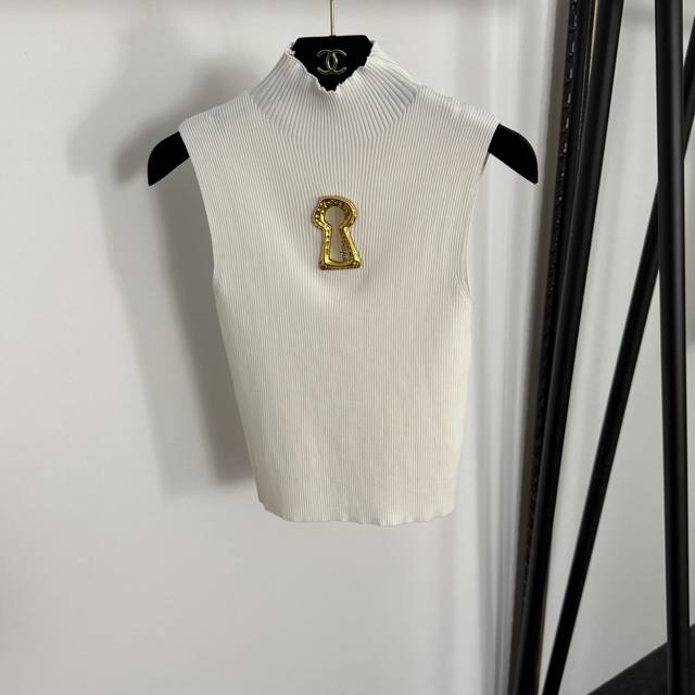 Style No. 20254951 Schiaparelli's latest half-high collar slim-fit knit vest with gold keyhole decoration, available in white, black, and coffee. One size fits all: chest 60, length 46; weight: 0.195Kg