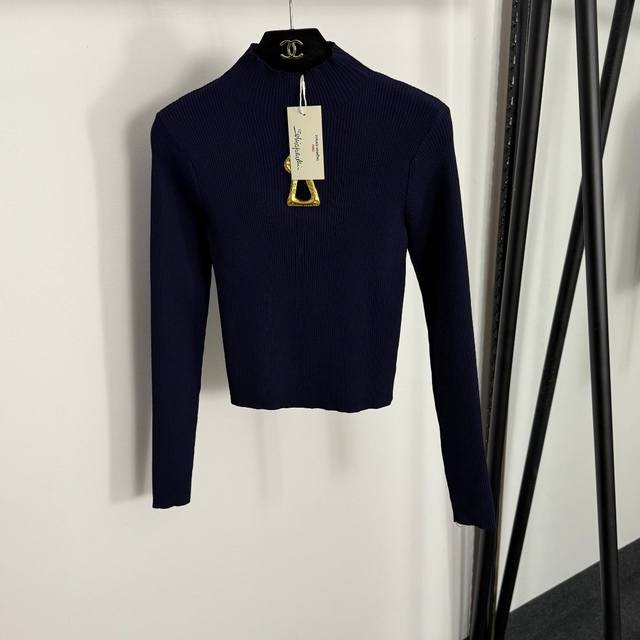 Style No. 20254952 Schiaparelli's newest gold keychain-embellished, half-high collar, slim-fitting, long-sleeved sweater top. Available in off-white, red, black, gray, or navy. One size fits all: chest 62, sleeve 59, length 45; Weight: 0.290 kg.