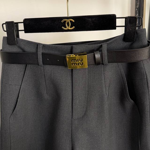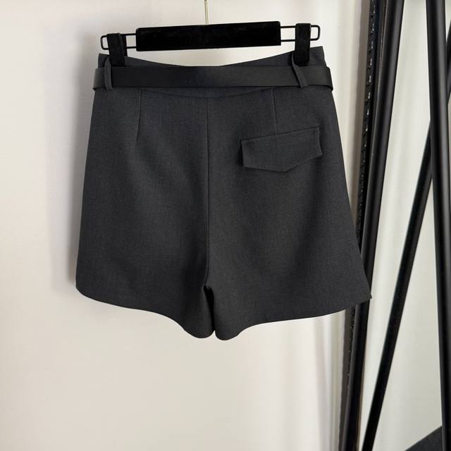 Style No. 20255030 Miumi* new metal logo straight suit shorts with belt, gray, dark brown, black, S-Xl, S size: waist 68, length 41; weight: 0.400Kg