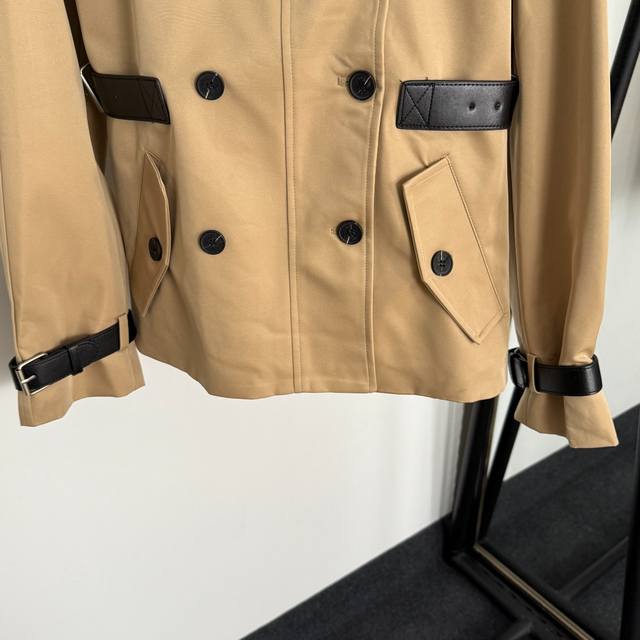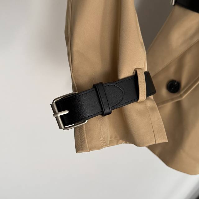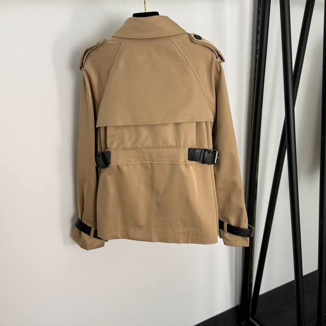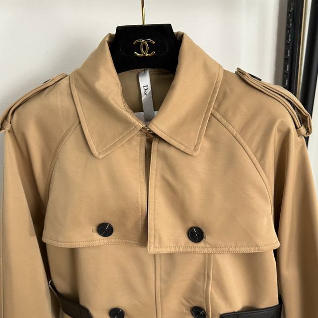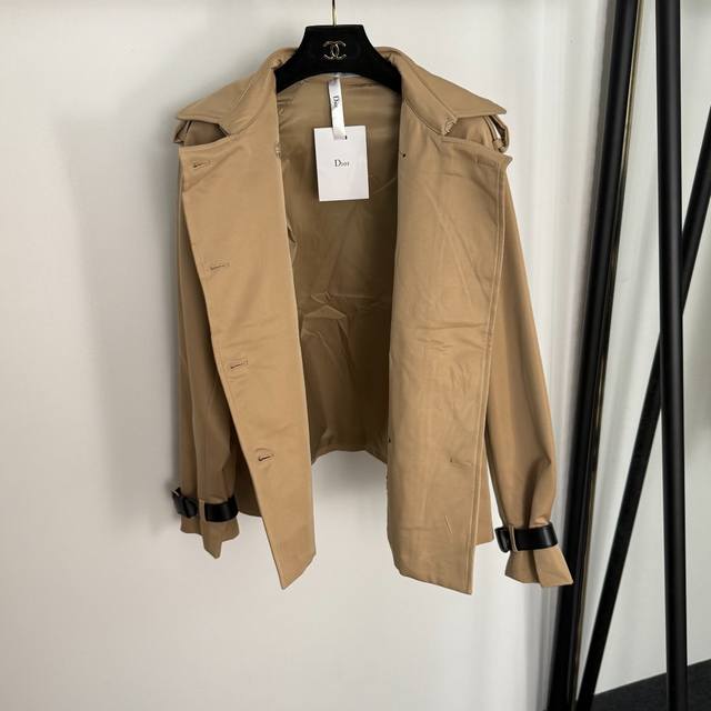 Style No. 20255159 Dio* new retro style leather button waist double-breasted slim long-sleeved short trench coat, khaki, Sml, M; chest 118, sleeve length 75, length 64; weight: 0.825Kg.