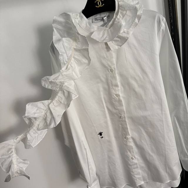 Style No. 20255219 Dio's newest Cd bee embroidered ruffled collar long-sleeved