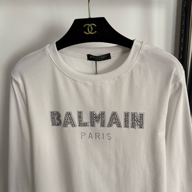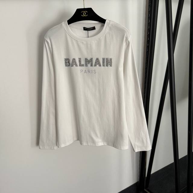 Style No. 20255285 Balmai* new hot-stitched logo long-sleeved T-shirt, available in white, black, and gray, sizes S , M; shoulder width 42, chest 98, sleeve length 60, length 63; weight: 0.240 kg.