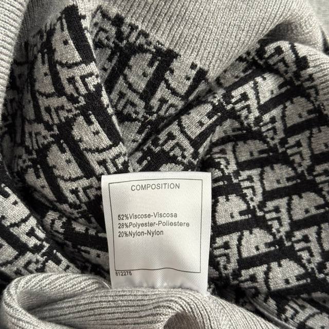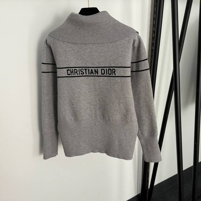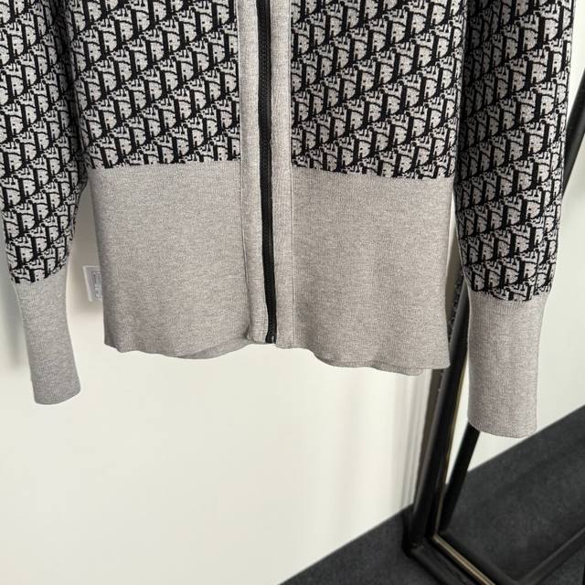 Style No. 20255299 Dio* new monogram logo double-sided lapel long-sleeved knitted zipper cardigan jacket, gray, khaki, size 36, 38, 40, 38; shoulder width 44, chest 108, sleeve length 58, length 60; weight: 0.630Kg