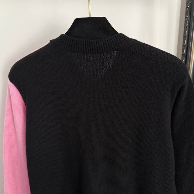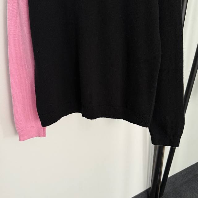 Style No. 20255306 Artistic face colorblock V-neck long-sleeved cotton and wool sweater, pink, Sml, M size; shoulder width 39, chest 100, sleeve length 60, length 58; weight: 0.355Kg