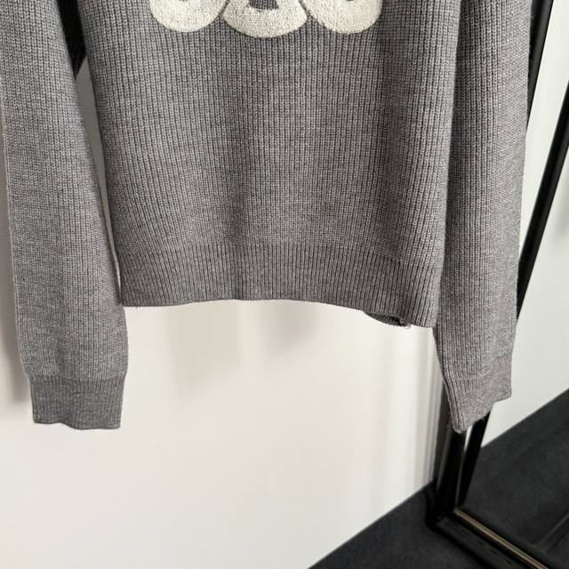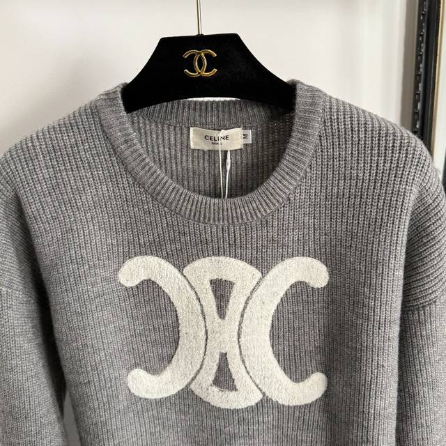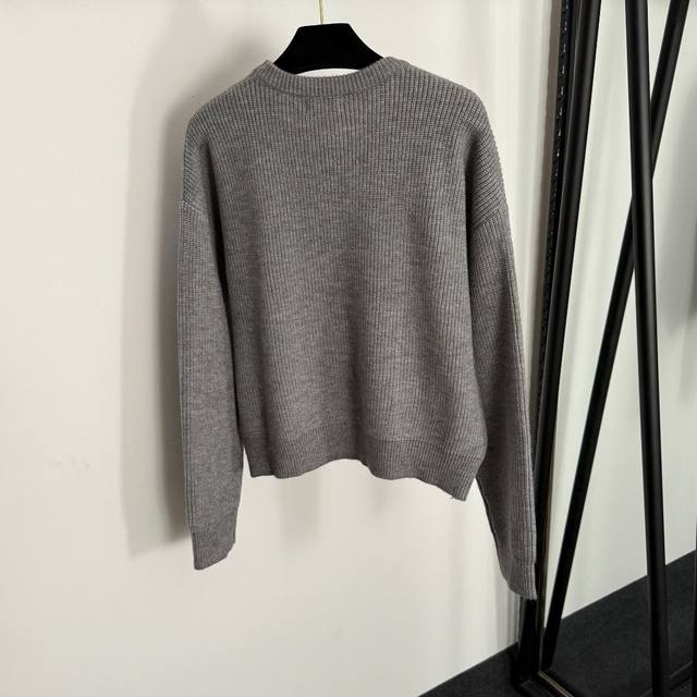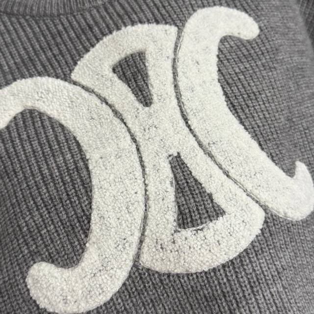 Style No. 20255353 Celin*'s new chest logo embroidered pullover long-sleeved sweater, available in gray, blue, and black, sizes S, M; shoulder width 55, chest 110, sleeve length 54, length 55; weight: 0.475 kg.