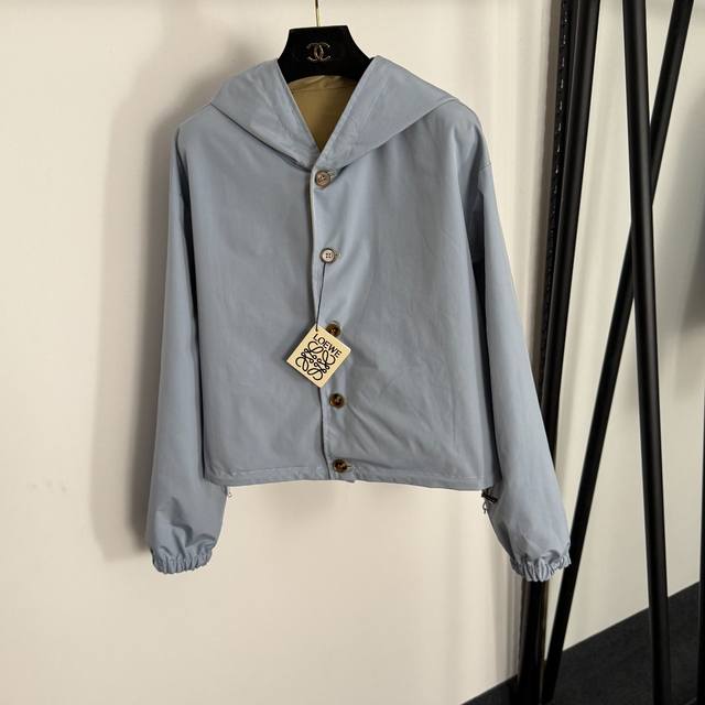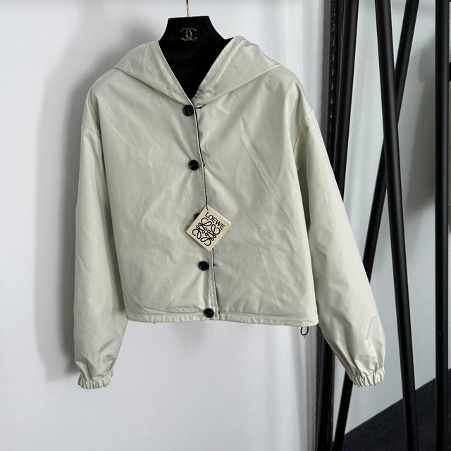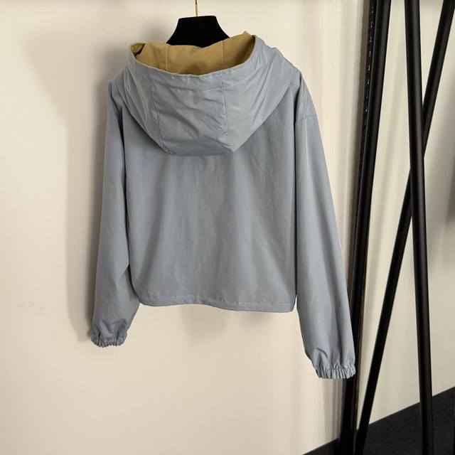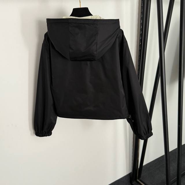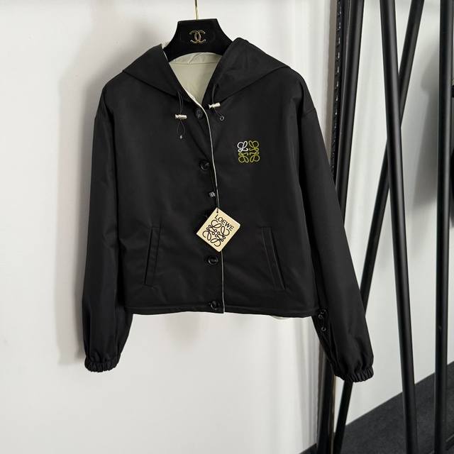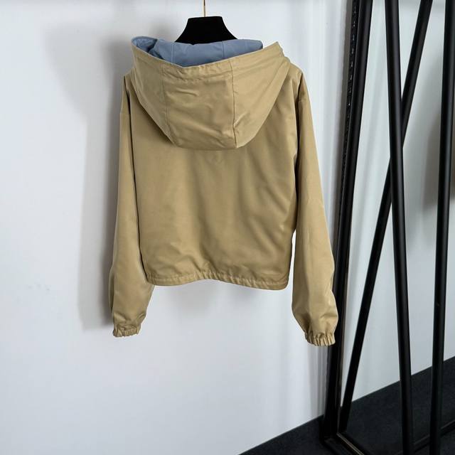Style No. 20255382 Loew's newest logo-embroidered reversible long-sleeved hooded windbreaker, khaki and black, sizes S-1, M; shoulder width 51, chest 112, sleeve length 57, length 52; weight: 0.575 kg.
