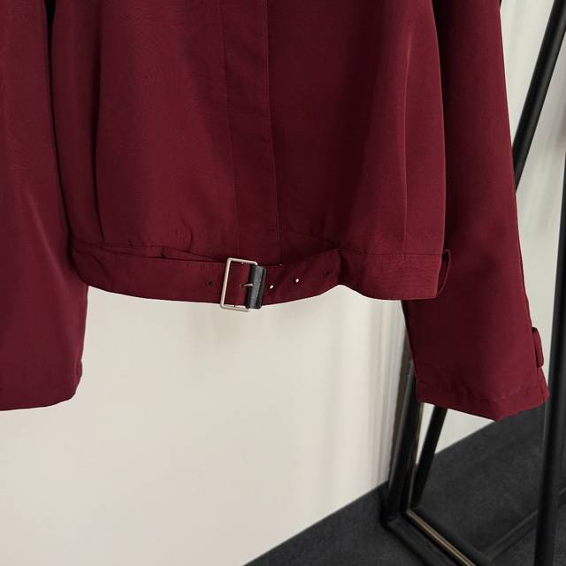 Style No. 20255384 Loew's newest leather logo back logo stand collar long-sleeved cropped windbreaker, red, sizes Sml, M; chest 114cm, sleeve 75cm, length 54cm; weight: 0.495kg.