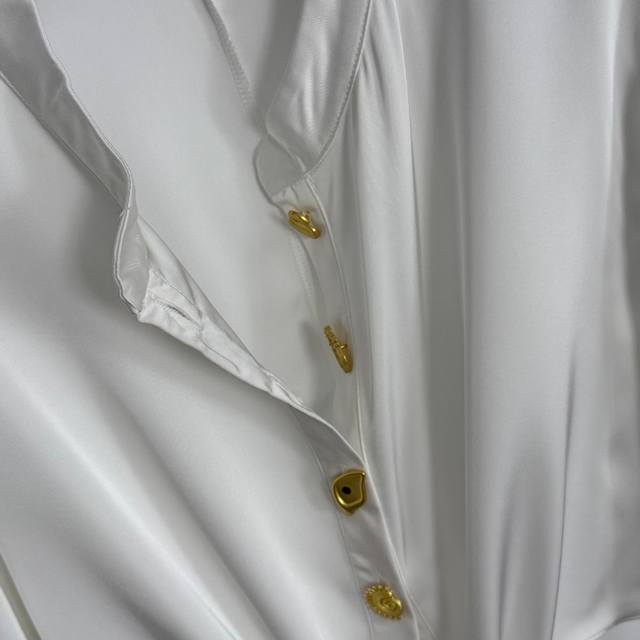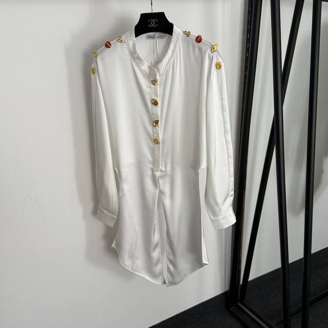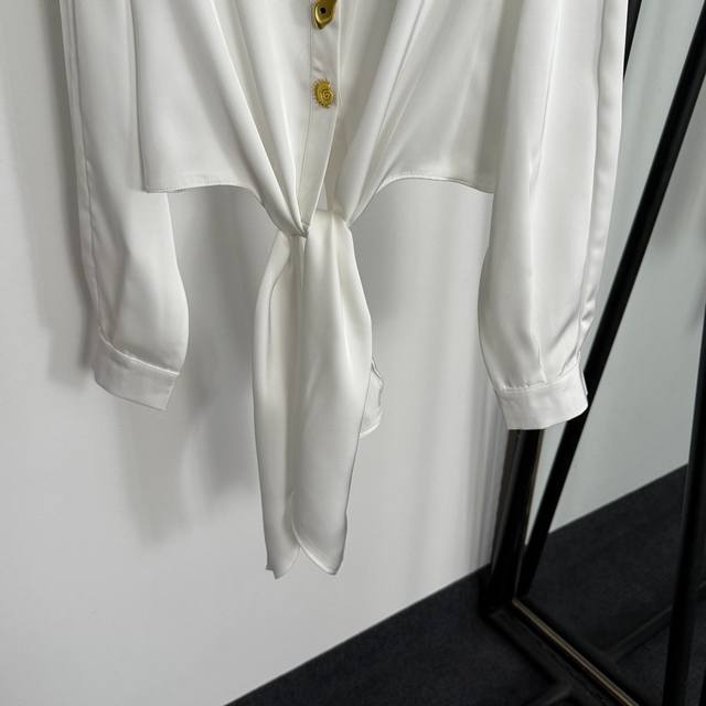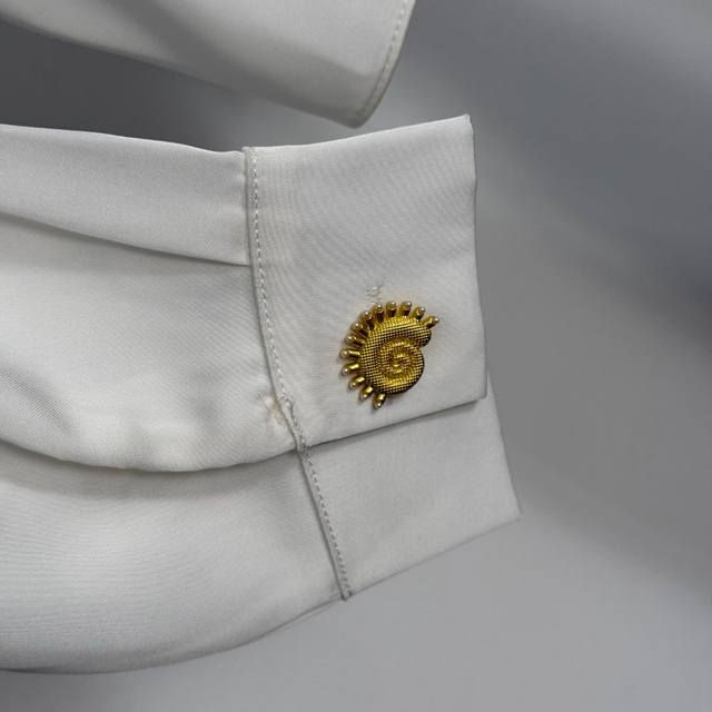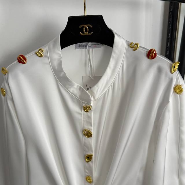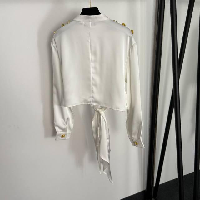 Style No. 20255386 Schiaparelli* New High-End Custom Irregular Gold Button Knot Waist-cinching Long-Sleeve Cropped Crop Shirt, White, Coffee, Black, Pink, Sizes S-XL, M; Shoulder Width 47cm, Bust 104cm, Sleeve Length 55cm, Length 41cm; Weight: 0.275kg.