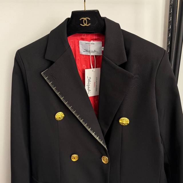 Style No. 20255761 Schiaparelli* newest ruler embroidered lapel high-end custom-made special-shaped gold button slim-fit long-sleeved suit jacket, coffee color, black, Sml, M size: shoulder width 40, chest circumference 108, sleeve length 61, length 71; weight: 0.675Kg