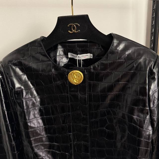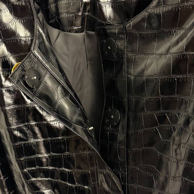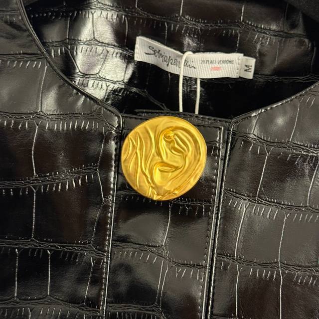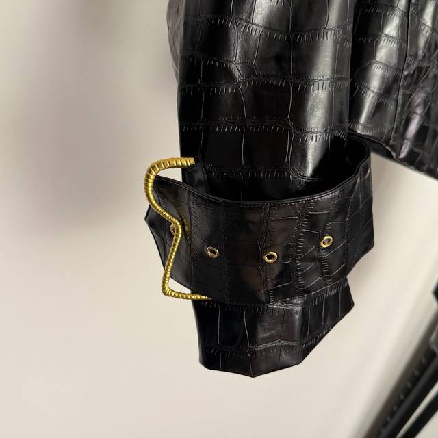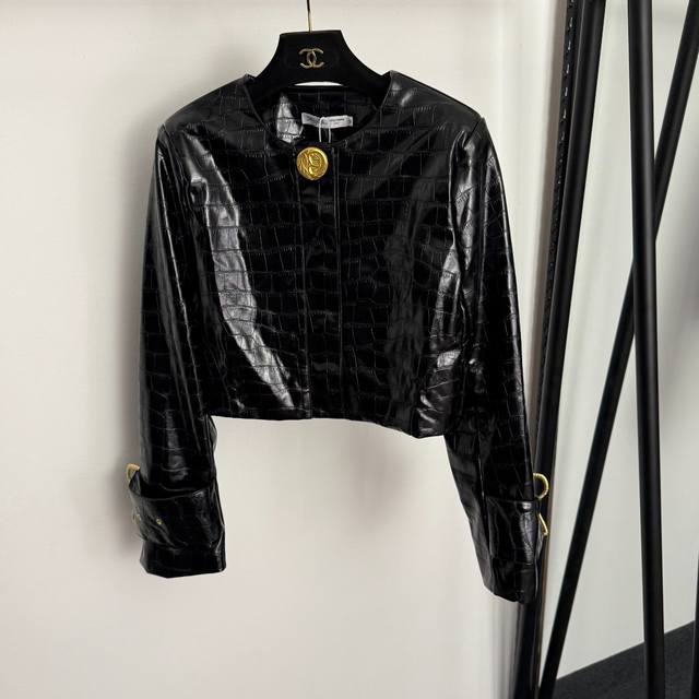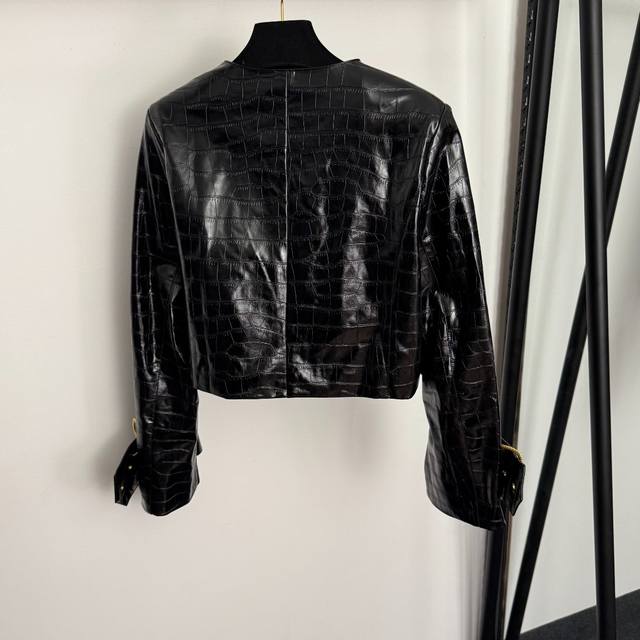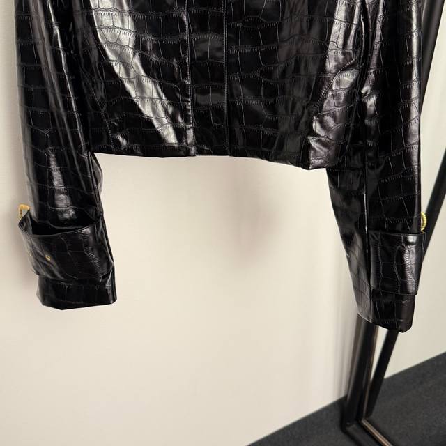 Style No. 20255786 Schiaparelli's newest suit, a crocodile-patterned long-sleeved PU leather jacket and a high-waisted skirt with gold trim, black, Sml, M: Shoulders 39, Chest 98, Sleeves 61, Length 42; Waist 72, Hips 92, Length 41; Weight: 10 kg.