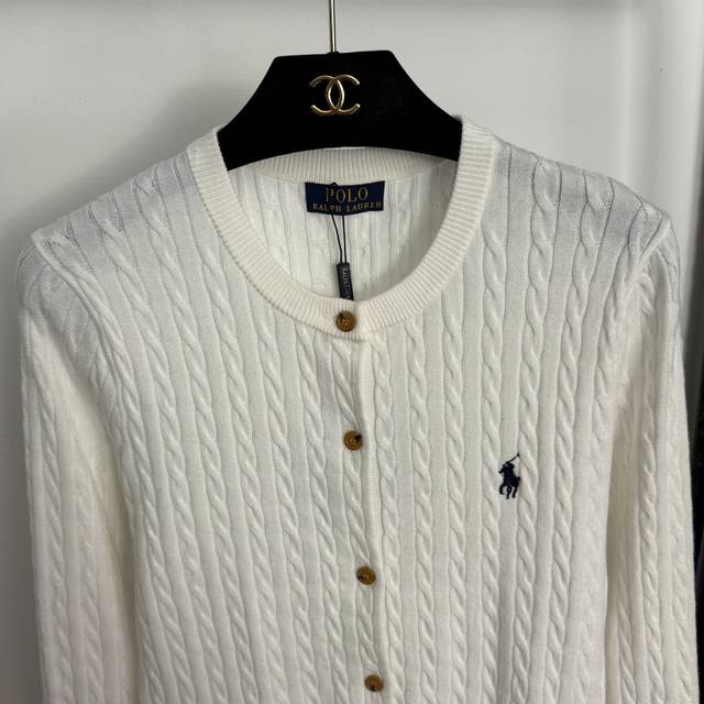 Style No. 20255805 Polo Ralph Lauren new polo embroidered cable stripe round neck long sleeve knitted cardigan, white, gray, navy blue, red, pink, coffee, Sml, S size: shoulder width 36, chest circumference 88, sleeve length 60, length 50; weight: 0.260Kg