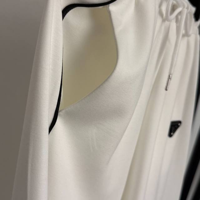 Style No. 20255828 prad* new three-piece suit, triangle label long-sleeved hooded zipper jacket + vest + elastic waist casual trousers, white, gray, black, Sml, M size: chest 76, length 36; chest 94, sleeve length 69, length 54; waist 64 elastic, length 104; weight: 1.070Kg