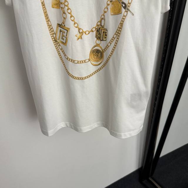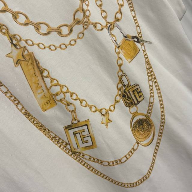 Style No. 20255830 Balmai* new style metal shoulder buckle gold chain necklace printed cotton sleeveless T-shirt vest, white, S M L, M size: chest 100, length 65; weight: 0.195Kg