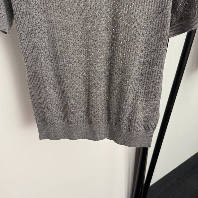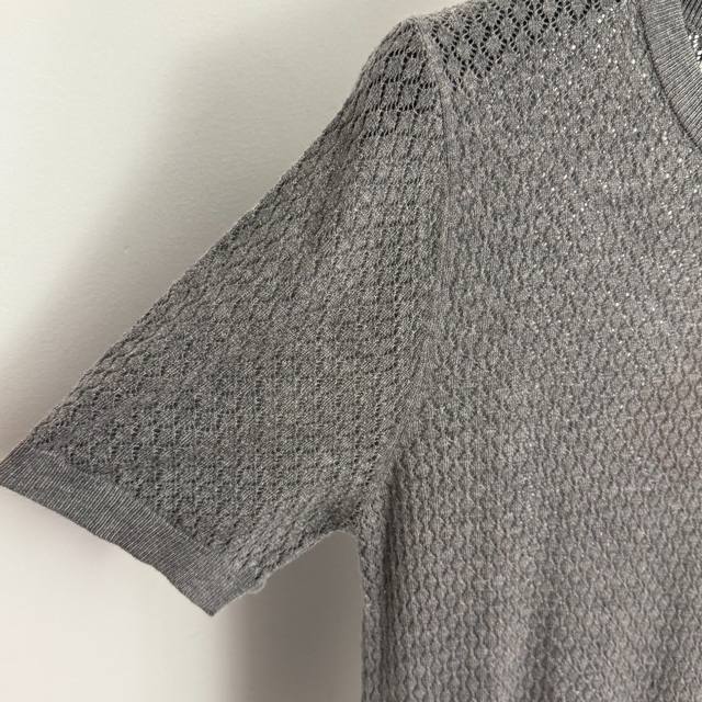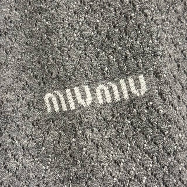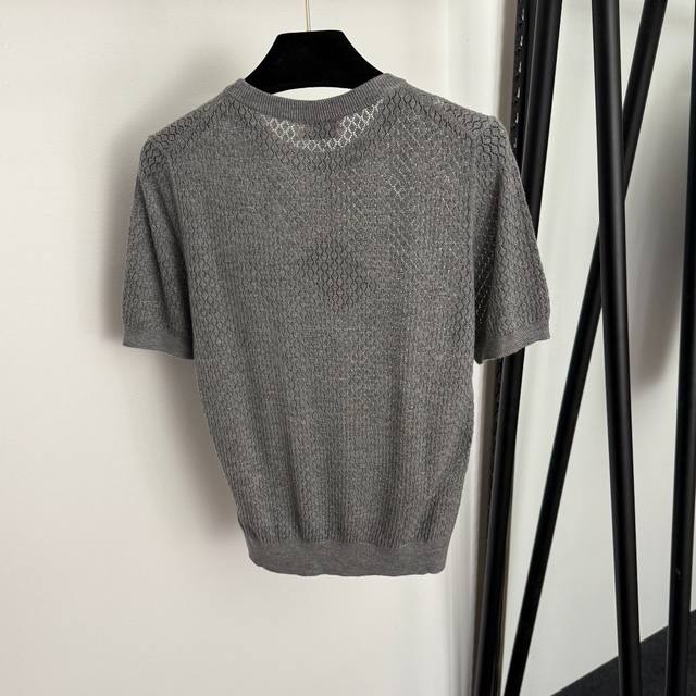 Style No. 20255846 Miumi* new minimalist logo letter hollow square short-sleeved knit T-shirt top, gray, pink, black, green, Sml, S size: shoulder width 36, chest 82, sleeve length 22, length 56; weight: 0.110kg.