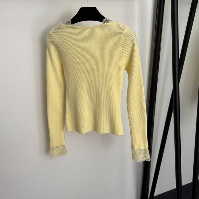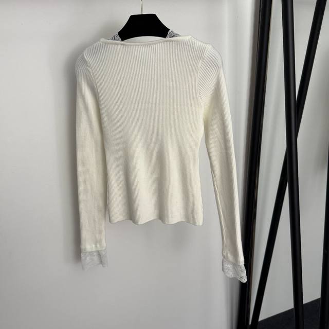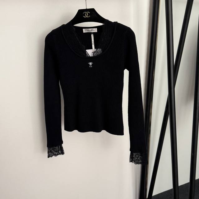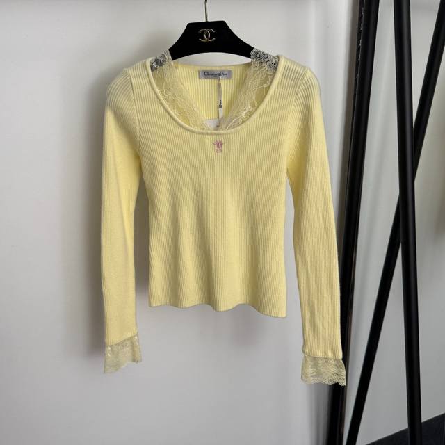 Style No. 20255852 Dio* New Cd Bee Embroidered Sexy Lace Splicing Long-Sleeved Knitted Bottoming Shirt, White, Yellow, Black, One Size: Chest 72, Sleeve Length 60, Length 51; Weight: 0.275Kg.