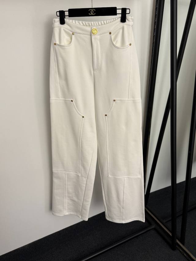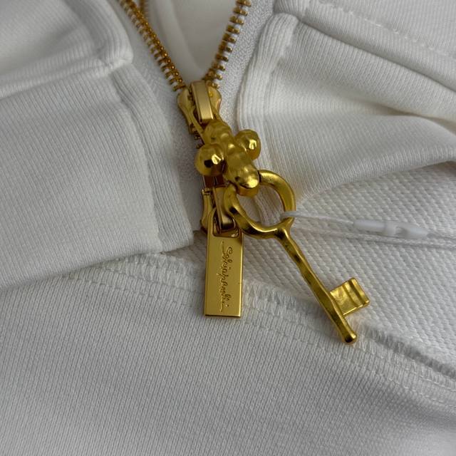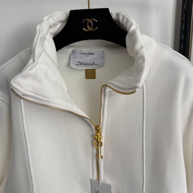 Style No. 20255867 Schiaparelli's latest sports suit, a long-sleeved stand-up collar jacket with a gold key zipper and high-waisted straight-leg casual pants, white, black, Sml, M: Shoulder 45, Chest 114, Sleeve 60, Length 56; Waist 70 elastic, Length 114; Weight: 1.685.