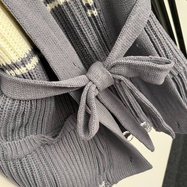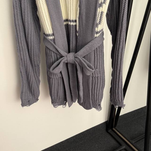 Style No. 20255870 Miumi* new logo letter tie waist color-blocked long-sleeved