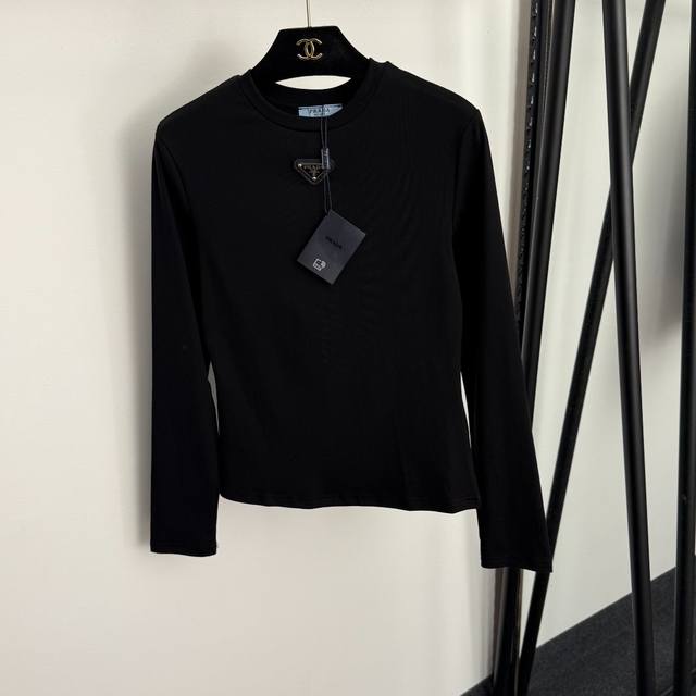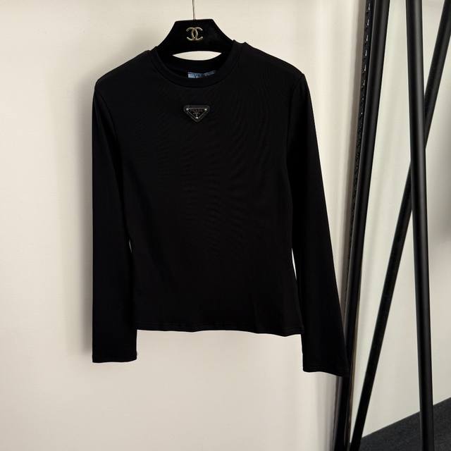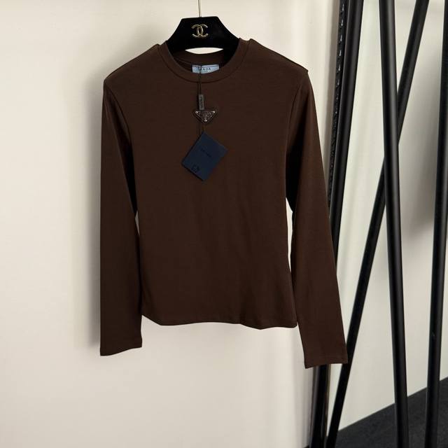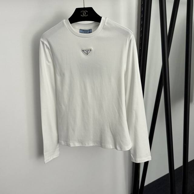 Style No. 20255900 prad* new logo triangle long-sleeved T-shirt, white, brown, black, S-Xl, Xl size: shoulder width 38, chest 86, sleeve length 60, length 59; weight: 0.200Kg