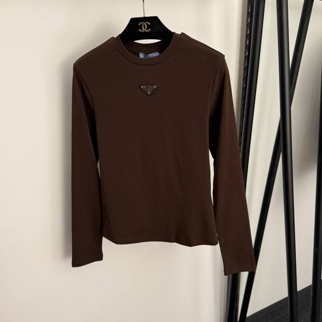 / Style No. 20255900 prad* new logo triangle long-sleeved T-shirt, white, brown,