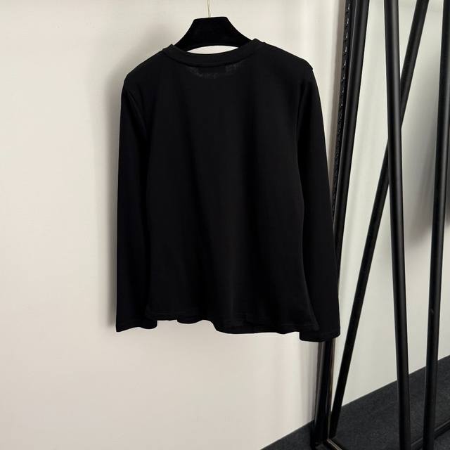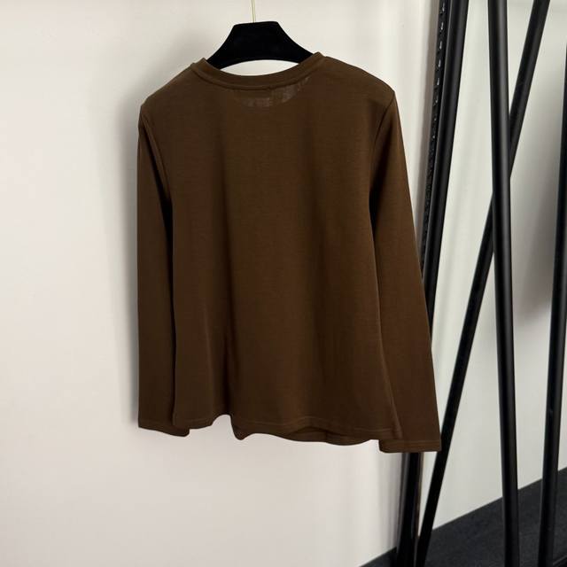 Style No. 20255901 Loew*s new logo leather label decorated pleated waist long-sleeved T-shirt, white, brown, black, S-Xl, S size: shoulder width 39, chest 90, sleeve length 61, length 64; weight: 0.215Kg