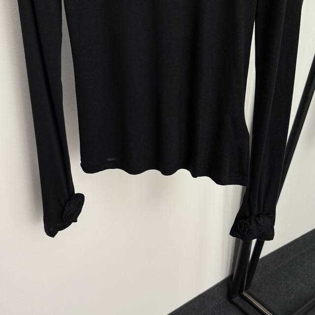Style No. 20255902 Valentin's new 3D rose cuffs slim-fit long-sleeved T-shirt,