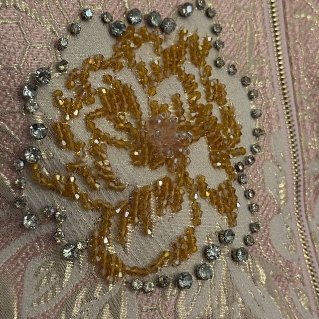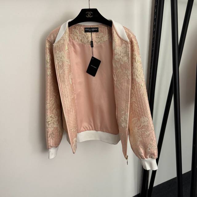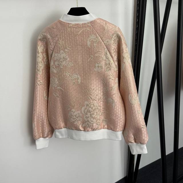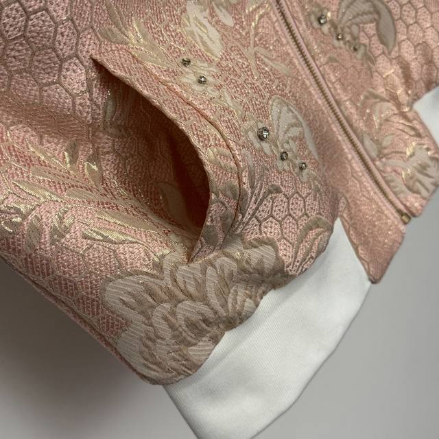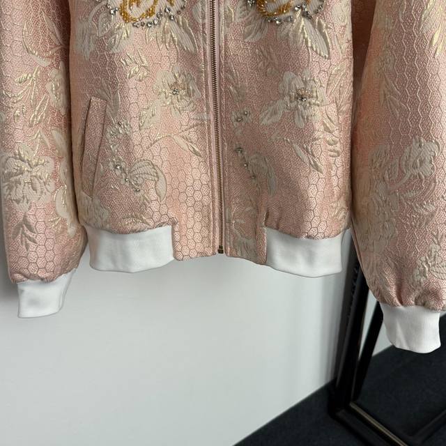 Style No. 20255904 Dg* New Heavy Beaded Diamond Flower Bright Silk Jacquard Long Sleeve Zipper Jacket, Pink, S-Xxl, M Size: Chest 104, Sleeve Length 71, Length 61; Weight: 0.515Kg