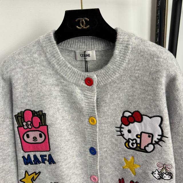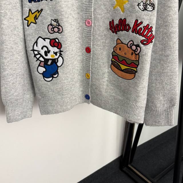 Style No. 20255934 Celin* new Hello Kitty cute cat cartoon embroidered long-sleeved knitted cardigan, gray, One Size: Shoulder 59, Chest 128, Sleeve 51, Length 64; Weight: 0.755Kg