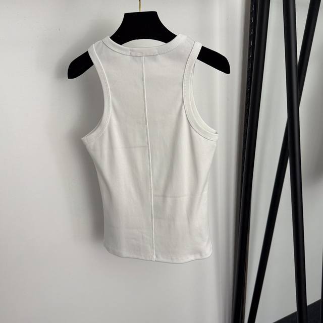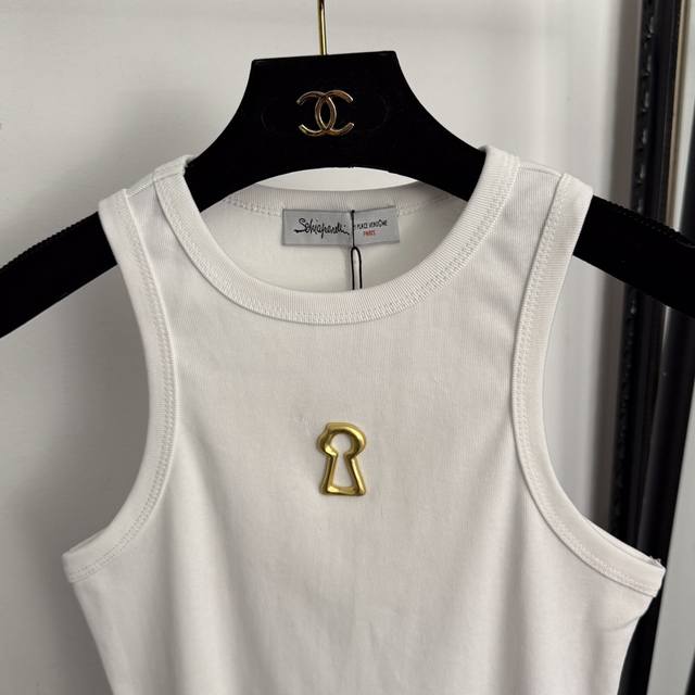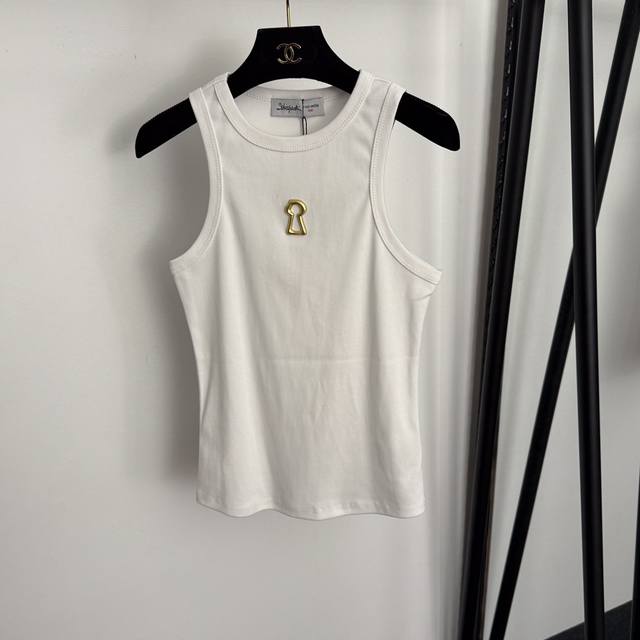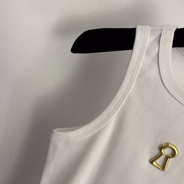 Style No. 20256902 Schiaparelli* New Gold Keyhole Metallic Decoration Slim Fit Pure Cotton Versatile Vest, White, Black, Brown, One Size: Bust 72cm, Length 57cm; Weight: 0.170kg.