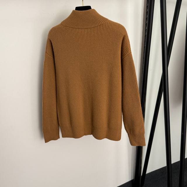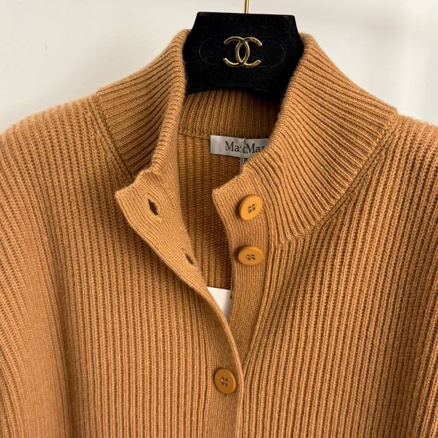 Style No. 20256936 Maxmar* New Sheep Wool Stand Collar Long Sleeve Knit Cardigan, Brown, Sizes S, M, L. Size M: Shoulder width 55cm, Bust 106cm, Sleeve length 47cm, Length 60cm; Weight: 0.555kg. (