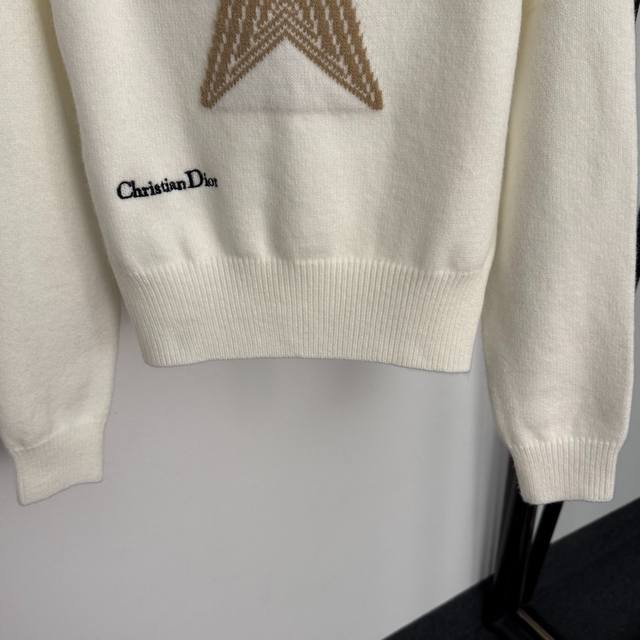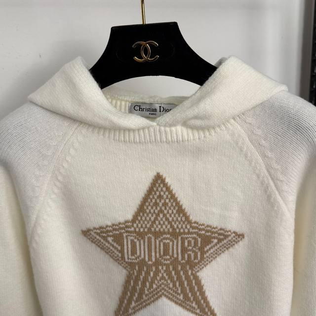 Style No. 20256941 Dio* New Color Block Five-Pointed Star Logo Embroidered Letter Long-Sleeve Hooded Knit Sweatshirt, White, Black, One Size: Chest 84cm, Sleeve Length 68cm, Length 52cm; Weight: 0.420kg.