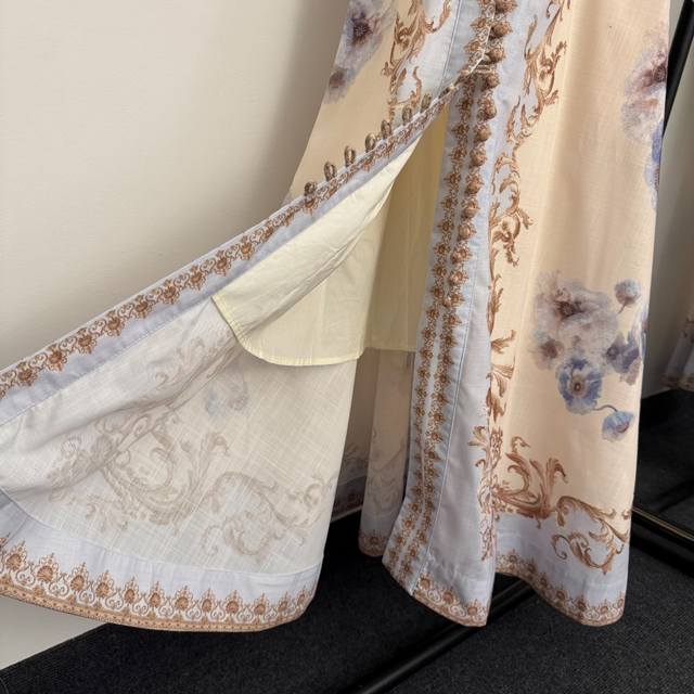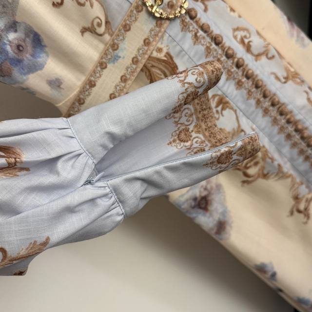 Style No. 20256947 Zimmermann New Retro Floral Print Lantern Long-Sleeved Dress with Belt, Blue, Sizes S-XL. Size S: Bust 82cm, Waist 66cm, Sleeve Length 71cm, Length 131cm; Weight: 0.790kg.