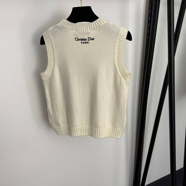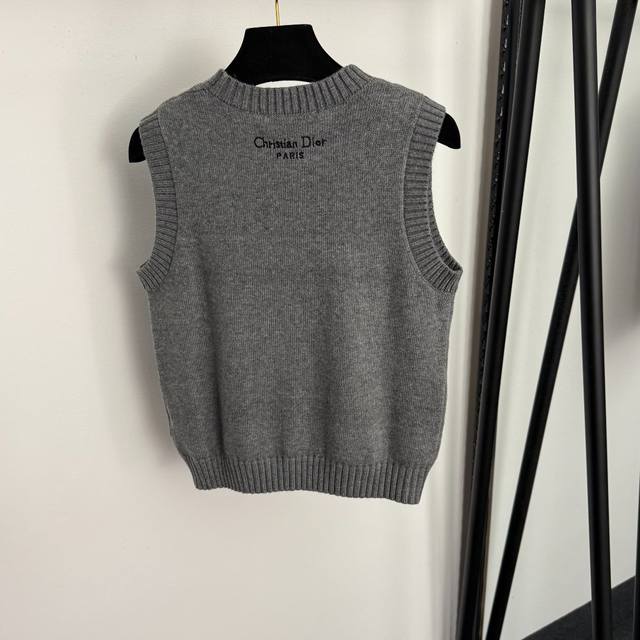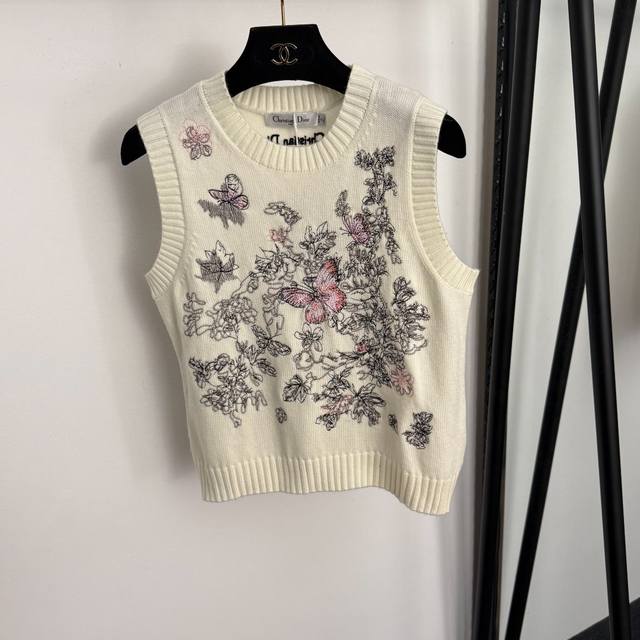 Style No. 20257007 Dio* New Butterfly Embroidered Flower Knitted Vest, Off-white, Gray, Navy Blue, Sizes 36, 38, 40. Size 38: Bust 86cm, Length 49cm; Weight: 0.195kg DDD