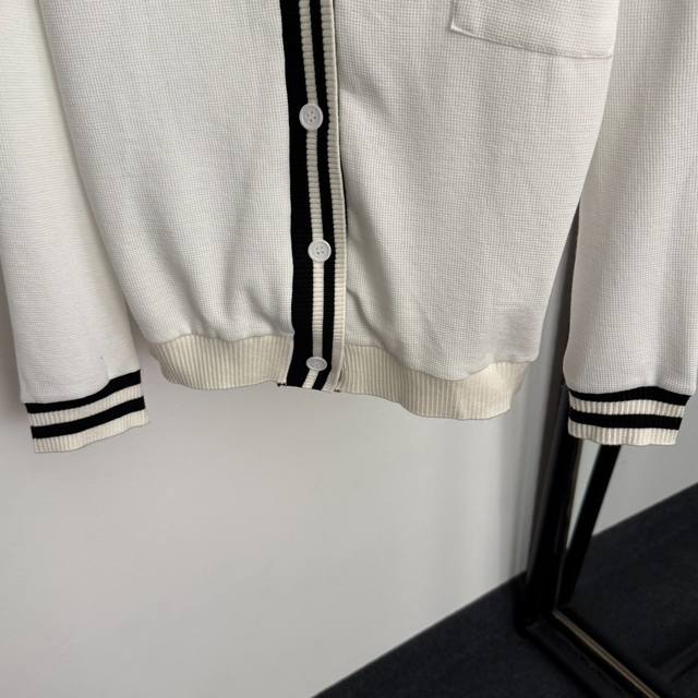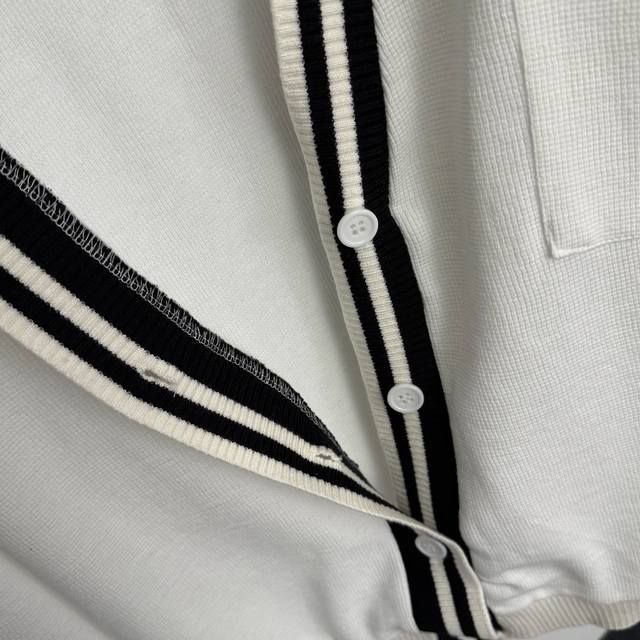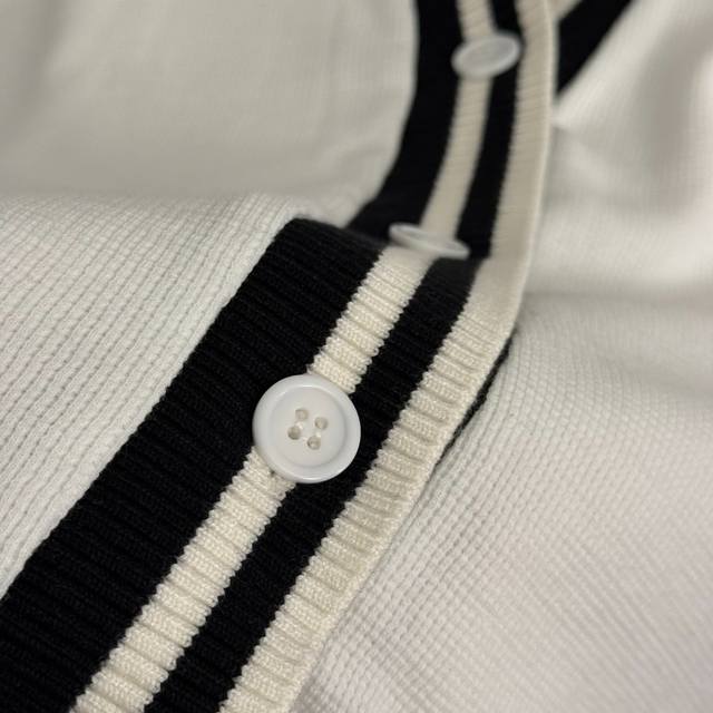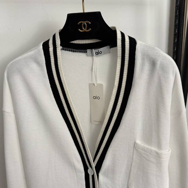 Style No. 20257028 Alo* New color-blocked V-neck long-sleeved knit cardigan, white, black, one size fits all: shoulder width 55cm, bust 110cm, sleeve length 52cm, length 61cm; weight: 0.345kg DDD