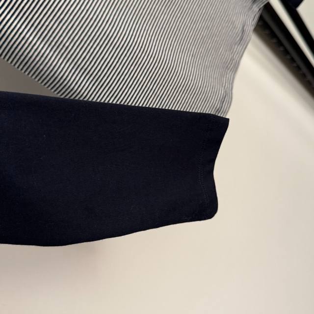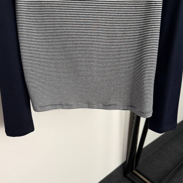 Style No. 20257059 Celin* New Arc de Triomphe Logo Embroidered Color Block Striped Long-Sleeve T-Shirt, Navy Blue, Sizes S, M, M: Chest 86cm, Sleeve Length 69cm, Length 57cm; Weight: 0.170kg DDD