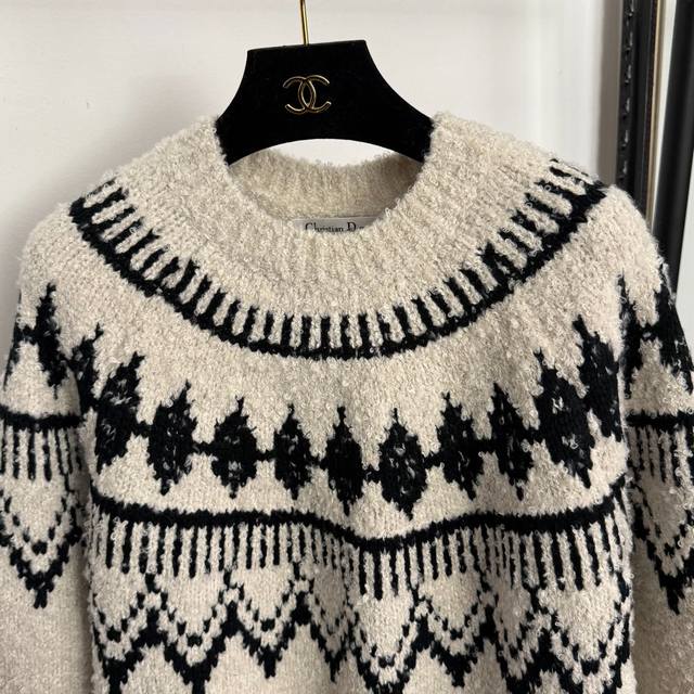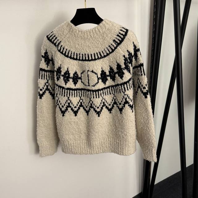 / Style No. 20257243 Dio* New Color-Blocked Retro Pattern Jacquard Pullover Long-
