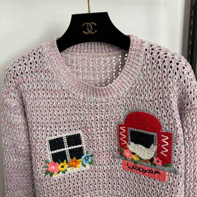 Style No. 20257246 Cartoon house and window embroidered pattern pullover long-sleeved wool knit sweater, purple, one size fits all: shoulder width 48, chest 116, sleeve length 56, length 59; weight: 0.805Kg DDD
